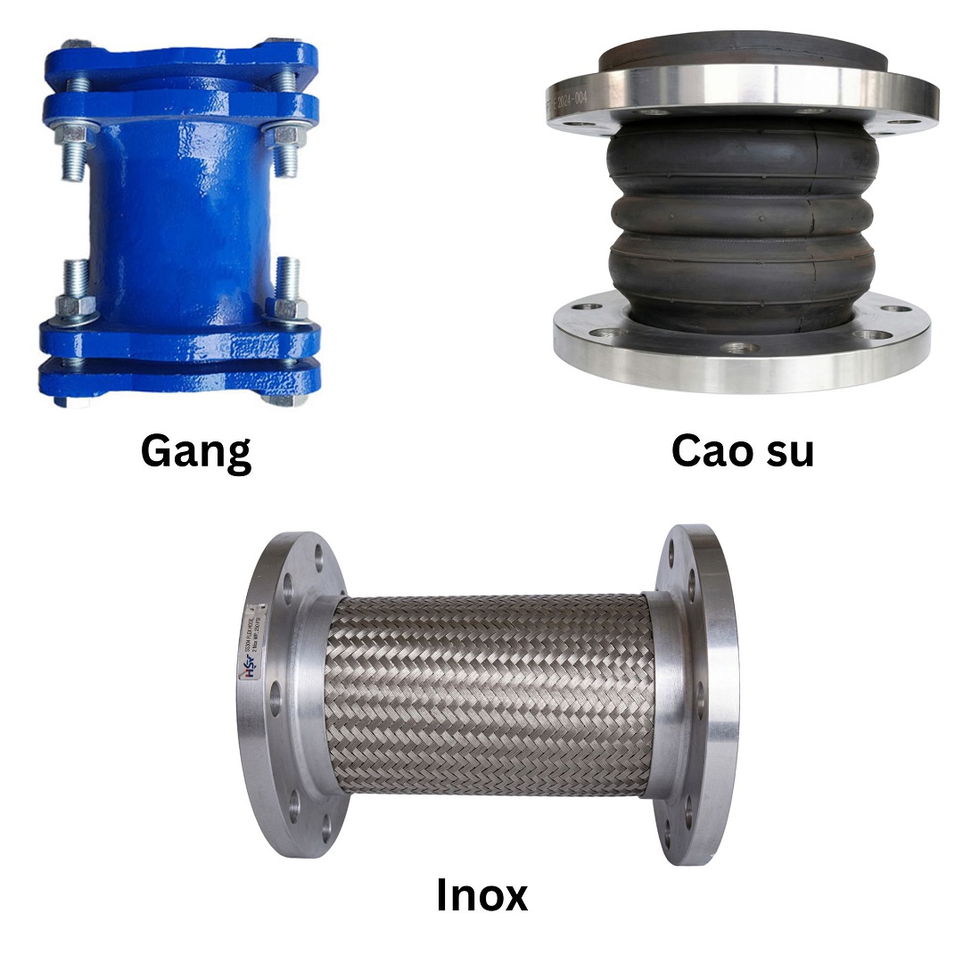 | Thân khớp | Cao su EPDM, Inox 304, Gang cầu | Phần co giãn chính, hấp thụ rung động và giãn nở nhiệt. |