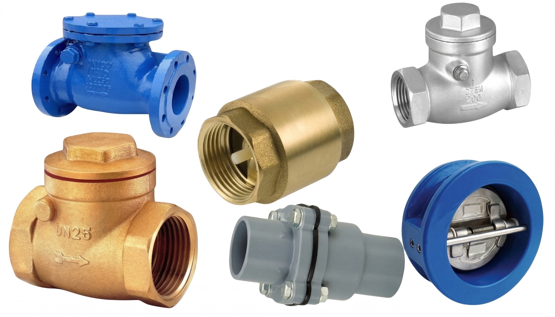 - Van một chiều Đồng: Kích thước nhỏ (DN15-DN50), dùng cho bình nóng lạnh, máy bơm nước gia đình.