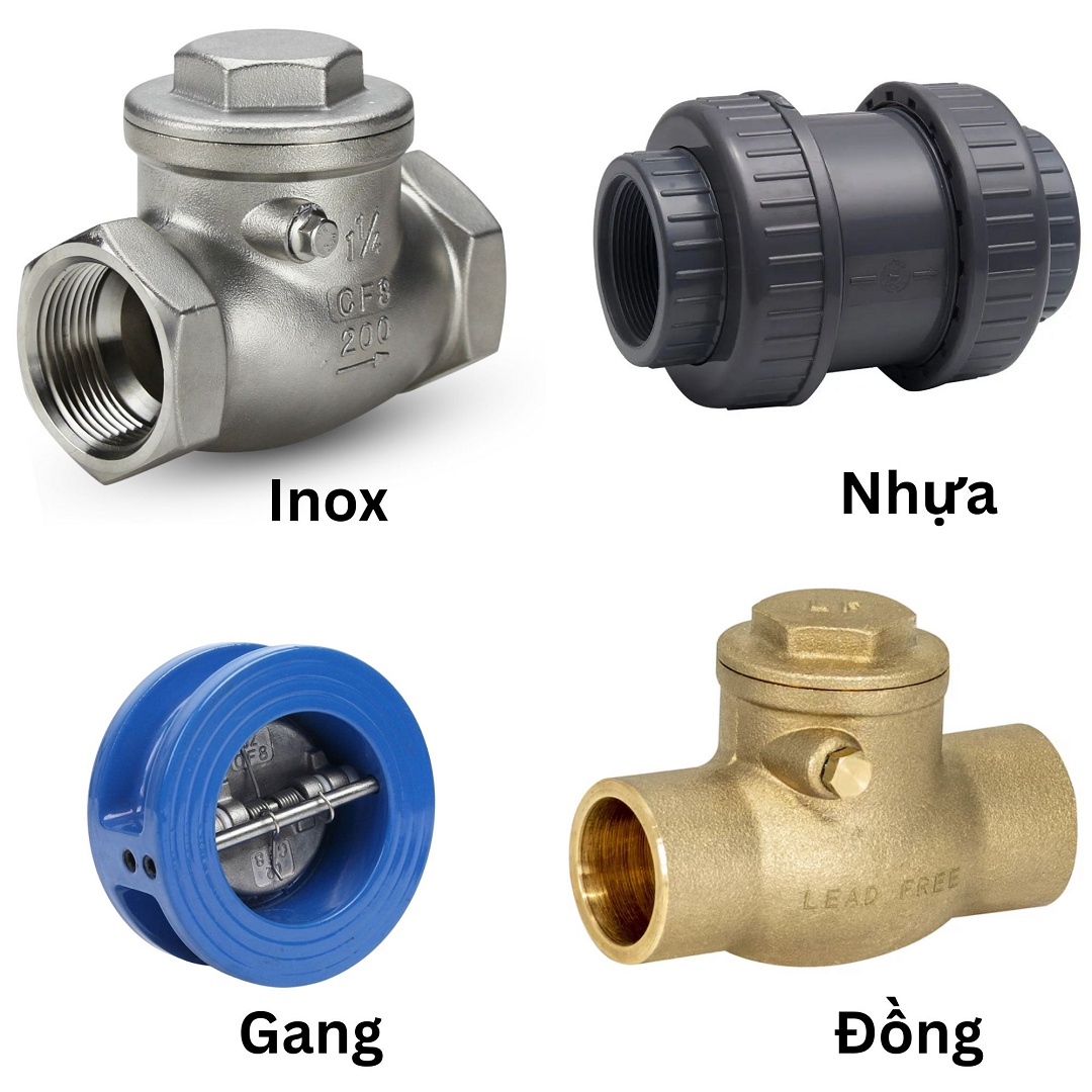 - Van một chiều Inox: Chịu ăn mòn và nhiệt độ cao, dùng cho hóa chất, thực phẩm, dược phẩm.
