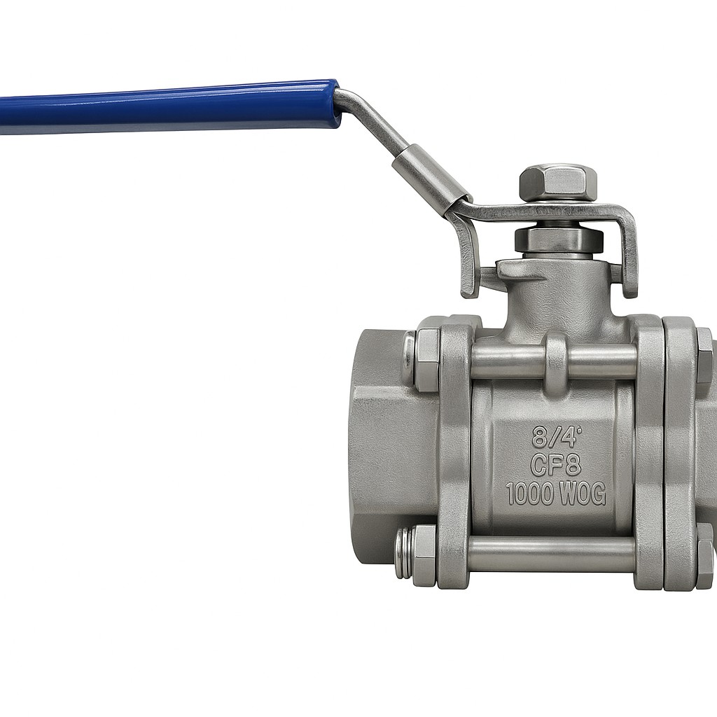 | Thân van (3 mảnh) | Inox 304 / Inox 316 | Chịu áp lực cao, chống rỉ sét vĩnh viễn |
